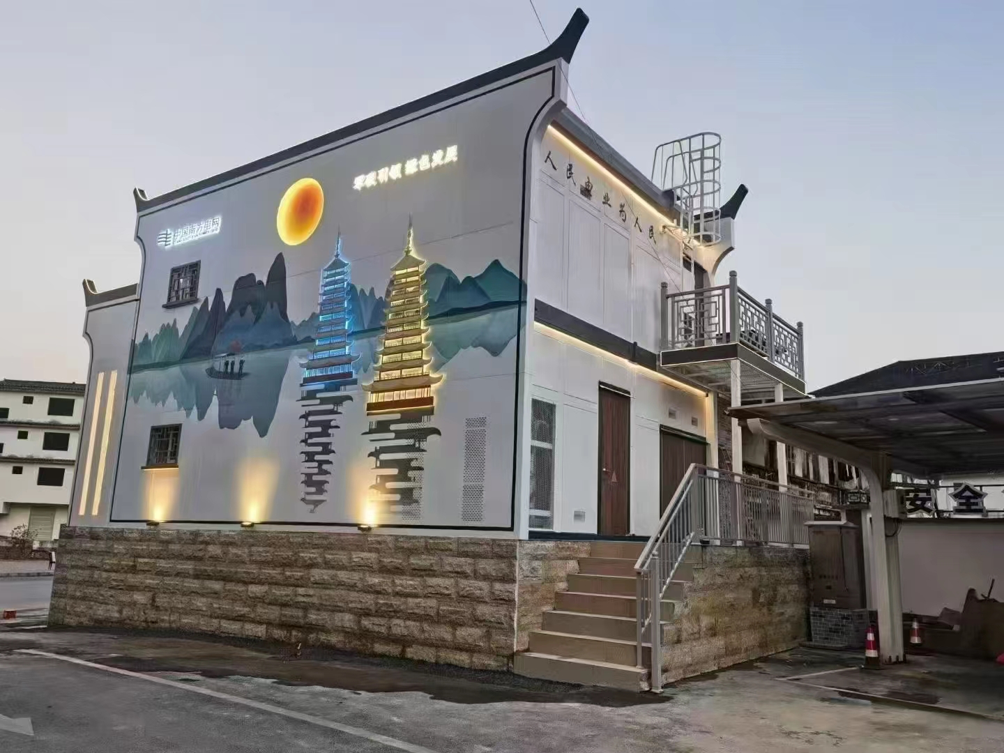 桂林漓江核心景區近零碳示范區項目位于陽朔興坪古鎮,是我國首個將“近零碳”與“文旅景觀”深度融合的配電網工程,也是配電網優質工程中唯一的“近零碳示范區”項目。該項目以“技術先進、低碳優先、景觀融合”為設計理念,采用仿古建筑風格,與周邊風景深度融合,構建起“數字化、零碳化、景觀化”的智能配電網,為興坪古鎮打造“世界一流旅游目的地”提供能源支撐。