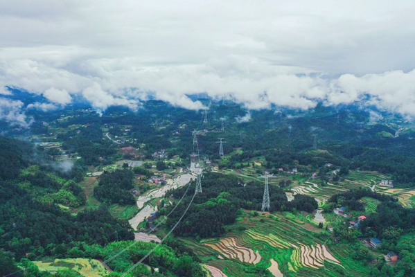 白鶴灘水電特高壓直流外送工程包含白鶴灘-江蘇±800千伏特高壓直流輸電工程和白鶴灘-浙江±800千伏特高壓直流輸電工程,線路全長約2×2000千米,途經四川、重慶、湖北、安徽、江蘇和浙江6省(市),每年可向華東輸電超600億千瓦時,有效緩解江浙地區用電緊張,優化區域能源結構。工程實現了多項重大創新,打造了新時代特高壓技術新標桿,是我國“西電東送”戰略性工程。華中院承擔了重慶市武隆區、彭水縣、黔江區境內的設計工作。